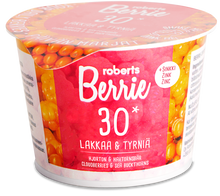 Egy pohár (100 ml) Berrie Mocsári hamvas szeder & homoktövis +cink 29 szem egész homoktövisből és 9 szem mocsári hamvas szederből készül. (számítási mennyiség)