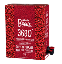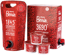 Egy pohár (100 ml) Berrie Vörösáfonya + tőzegáfonya 123 szem egész áfonyából készül. (számítási mennyiség)